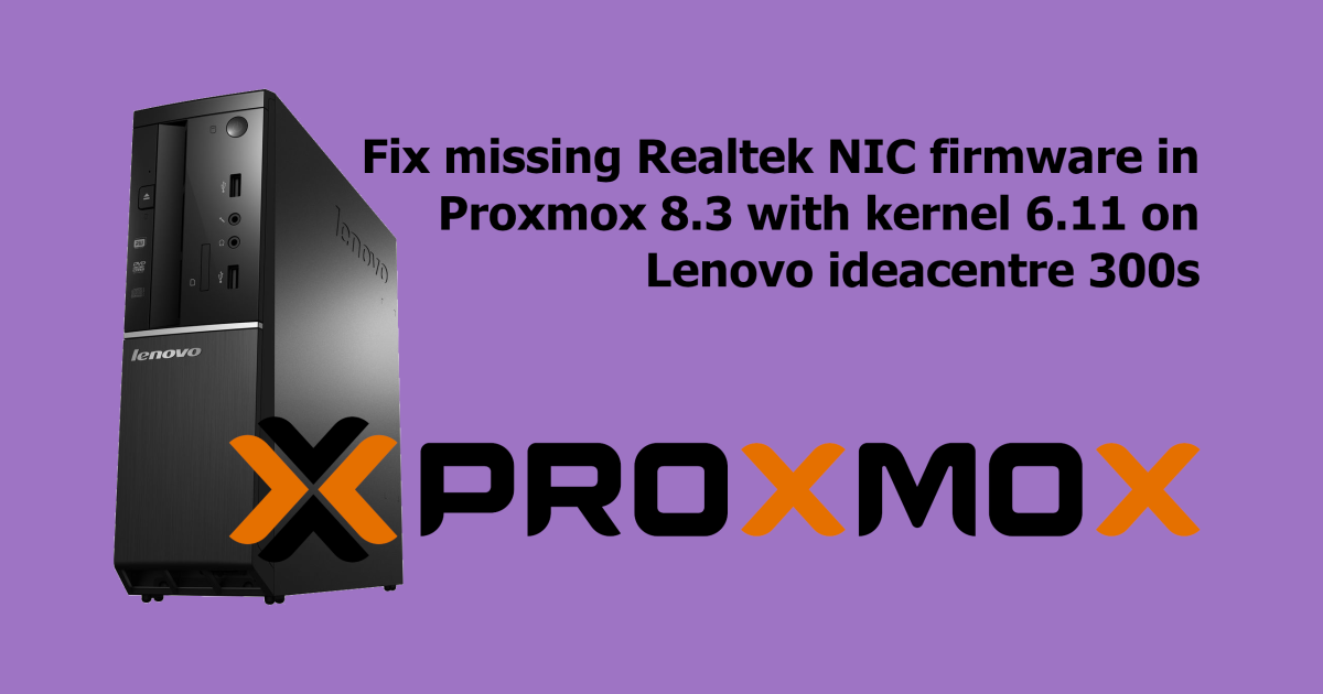 After installing Proxmox 8.3 onto a Lenovo ideacentre 300s and opting-in to Linux kernel 6.11, the error w: possible missing firmware /lib/firmware/rtl_nic/rtl8126a-3.fw for module r8169 was shown. The easiest way to fix it is by downloading the firmware file directly from the Linux source tree and updating the initramfs.